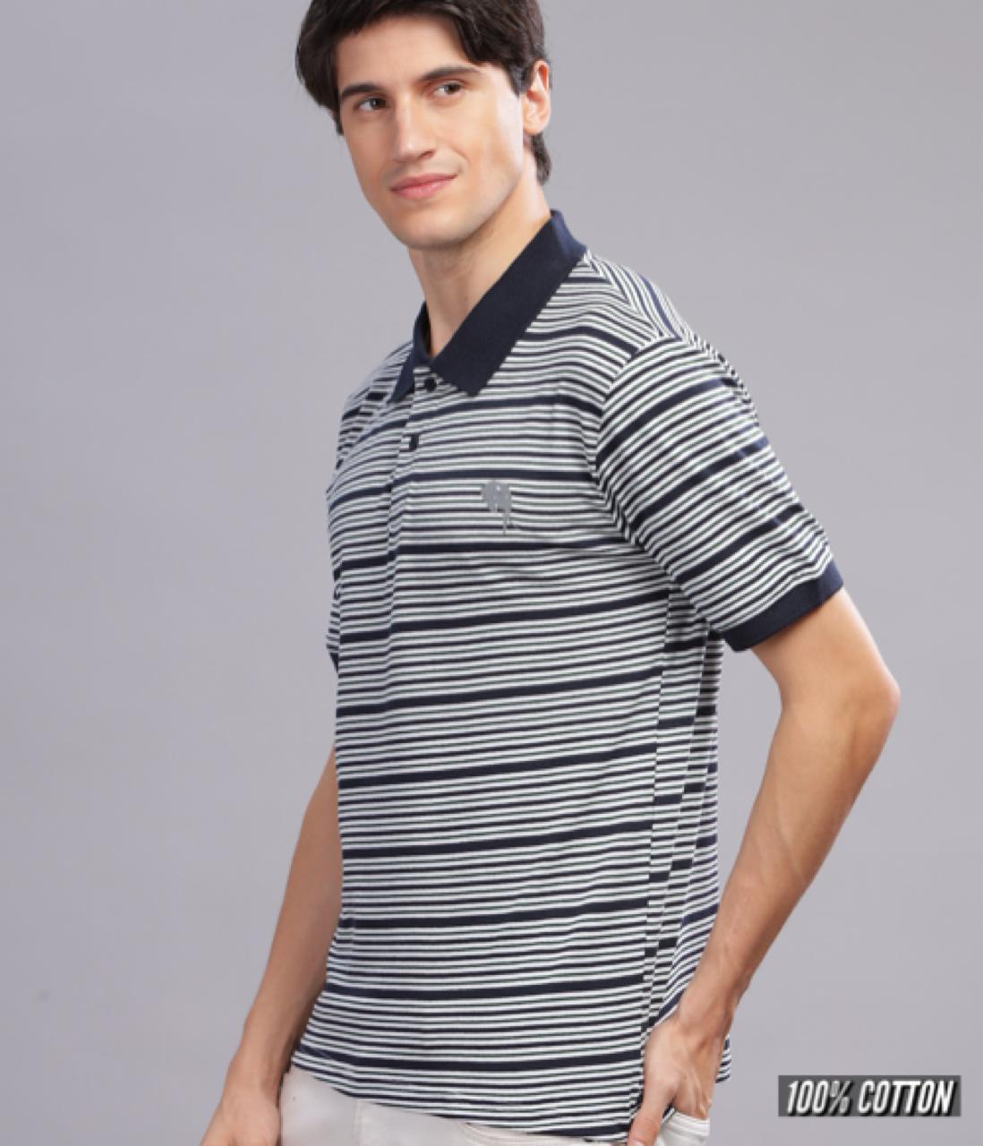 SKU: PR29 || Navy Stripes || 100% Cotton Polo T-Shirt Category: