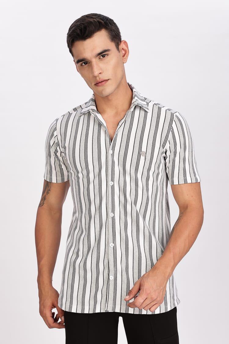 PR3 Shirts 007 – White & Silver Stripes || Half Sleeve Shirt