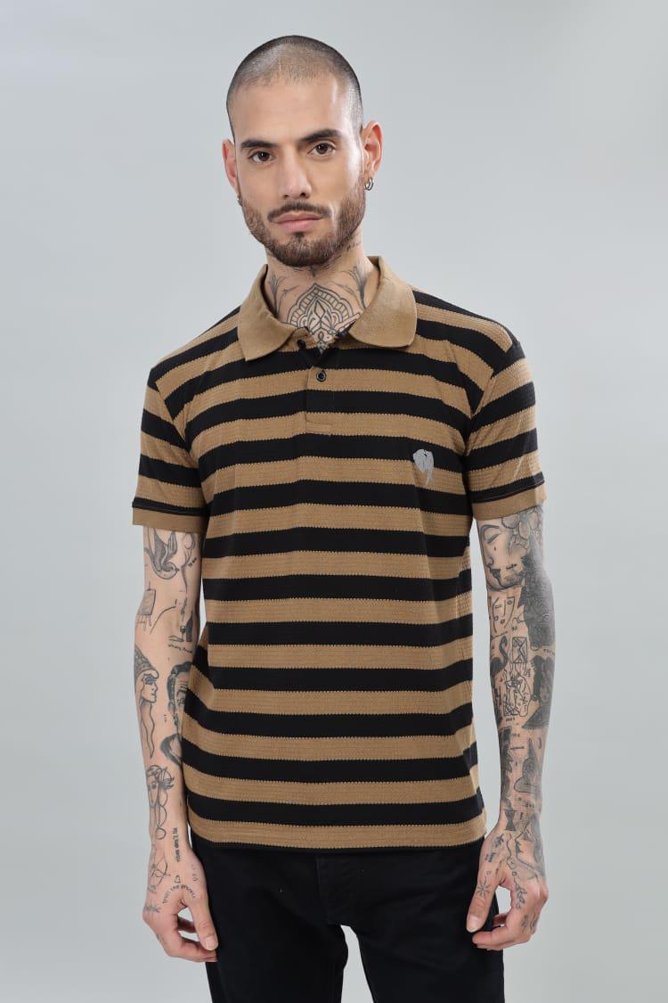 PR38 || Brown Stripes || 100% Cotton Polo T-Shirt