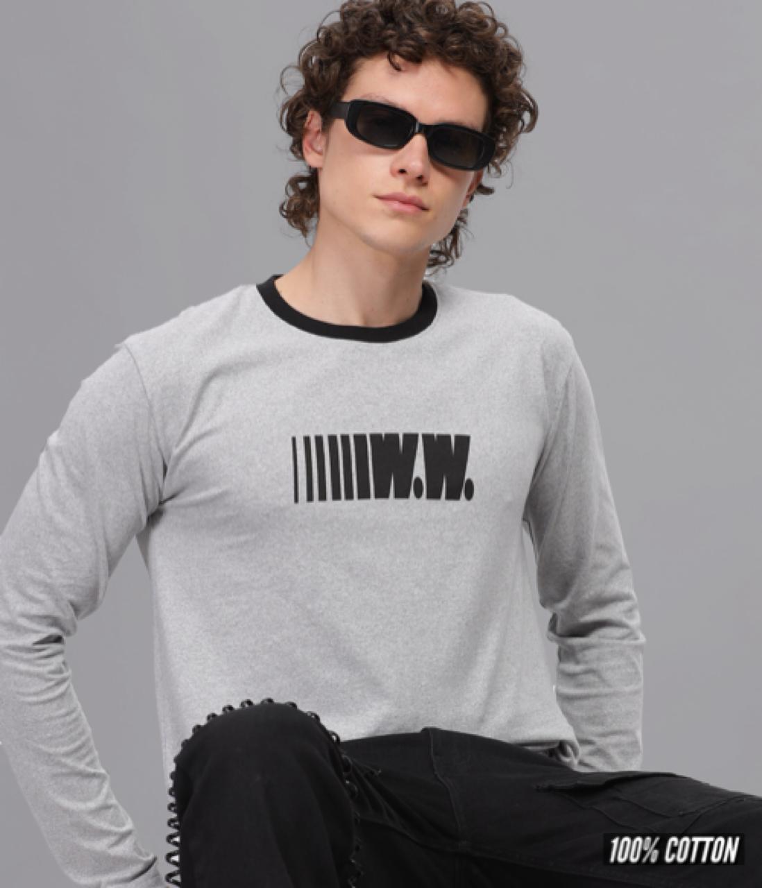 RFS002 || Grey Melange || Round Neck Full Sleeve T-Shirt