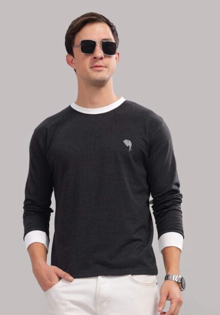 SKU: RFS006 || Black & White || Round Neck Full Sleeve T-Shirt Category: